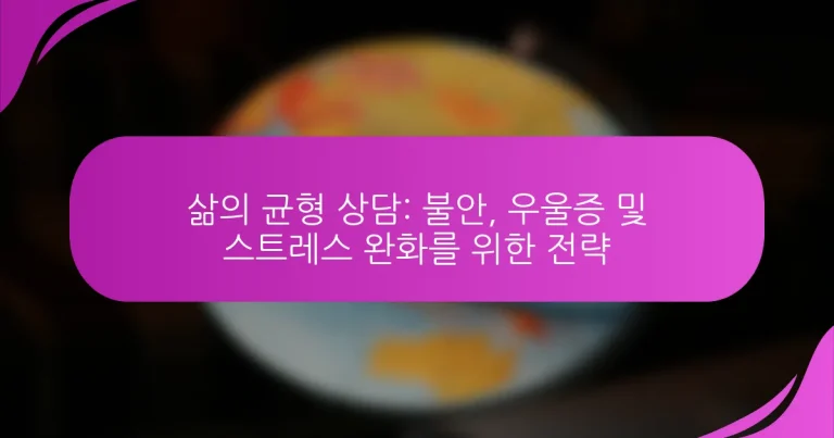 삶의 균형 상담: 불안, 우울증 및 스트레스 완화를 위한 전략